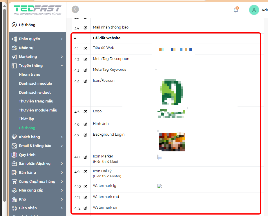 - Icon/Favicon, Logo, Background Login: Các hình ảnh hiển thị trên website.