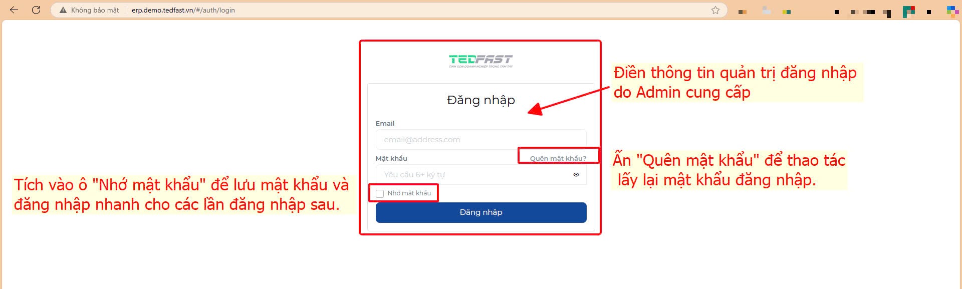 - Hãy đảm bảo bạn nhập đúng email và mật khẩu đã được Admin cung cấp.
