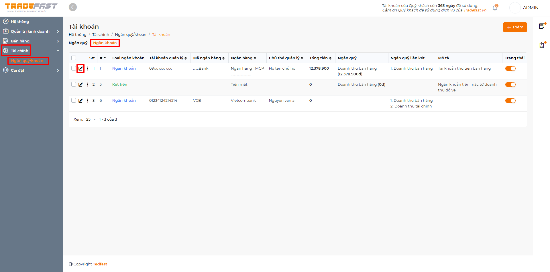 - Hoặc chọn Thêm để tạo mới một ngân khoản khác