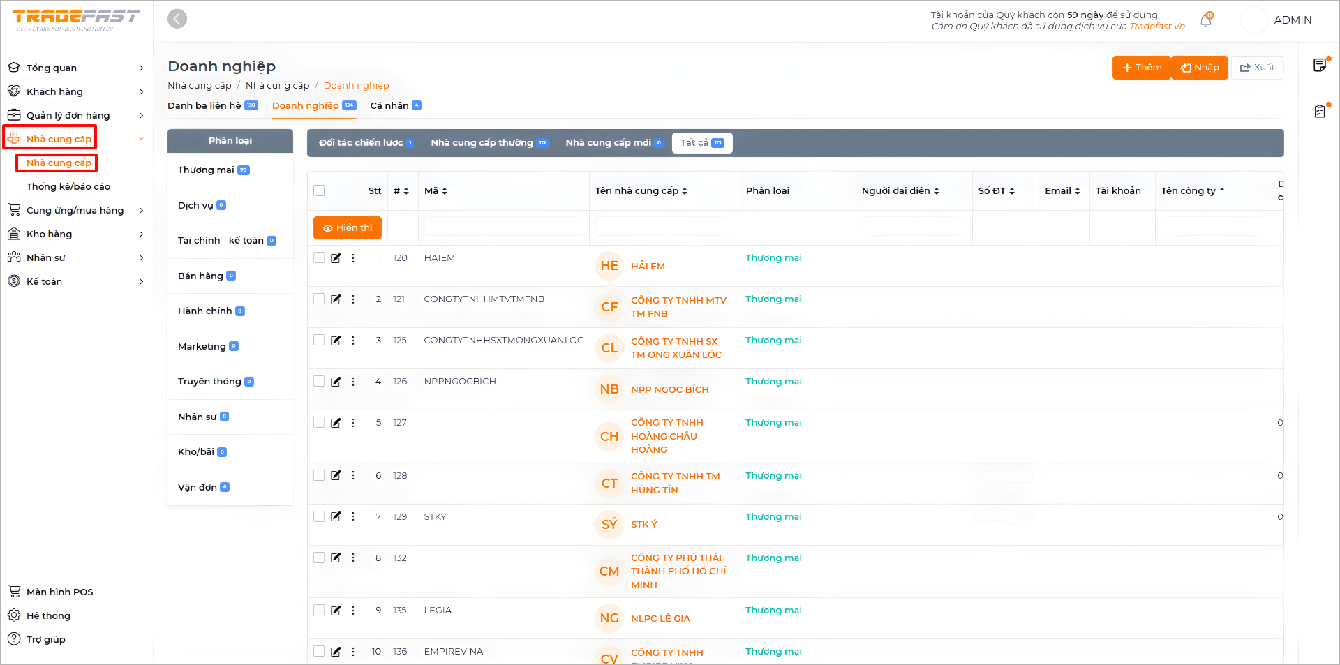 Cách phân loại này giúp người dùng dễ dàng tra cứu, quản lý và ưu tiên làm việc với từng nhóm nhà cung cấp.