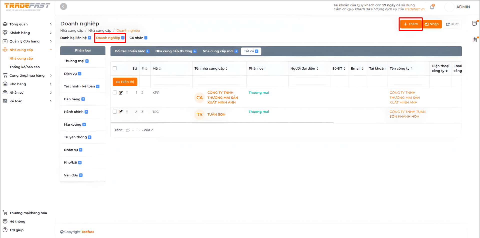 Hình 2.3 Thêm nhà cung cấp doanh nghiệp